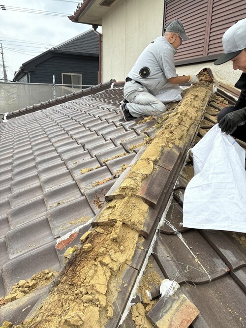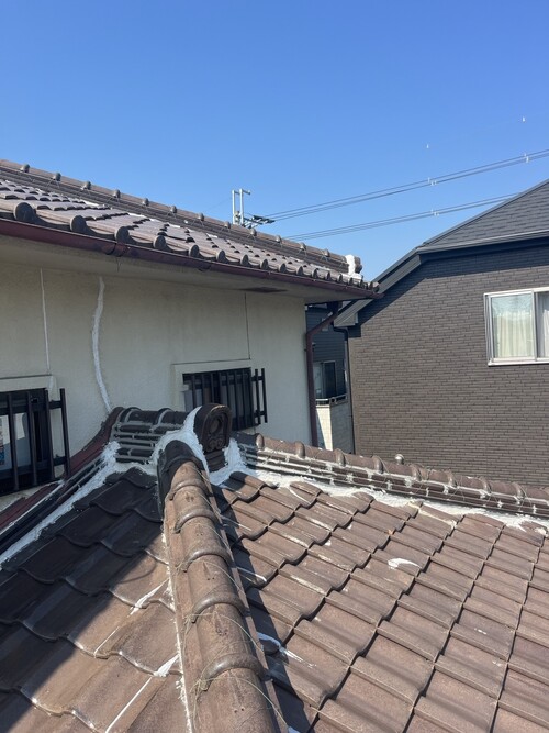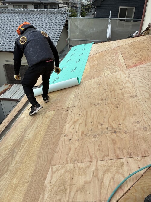 日本瓦から軽量金属屋根材への葺き替え工事です。1階の部屋にのみ雨漏りがあるとのことで、今回は1階の屋根のみ葺き替えさせていただきました。