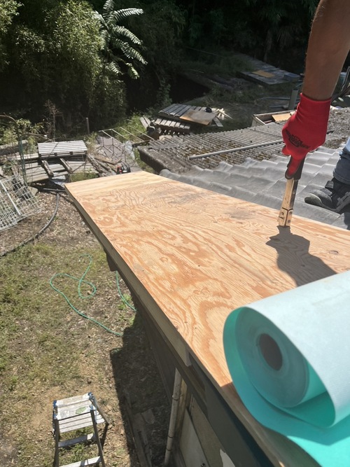破損している箇所のみ板金による補修工事です。しばらく放置されていたため、下地の材木が腐食していました。材木も合わせて補強しています。