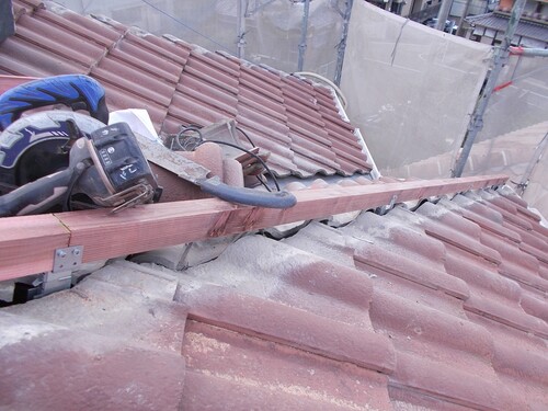 セメント瓦の棟積み直し工事 アルプスのアルペン30 修繕工事