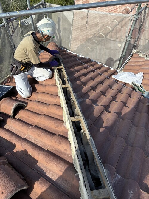 泉南市 S様邸 セメント瓦の棟積み直し工事 アルプスのアルペン30 修繕工事