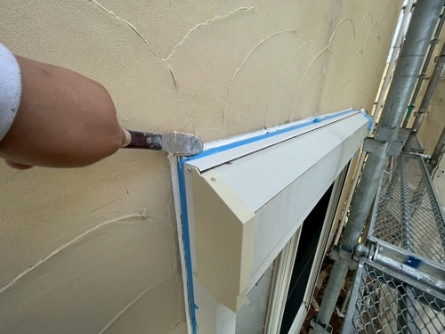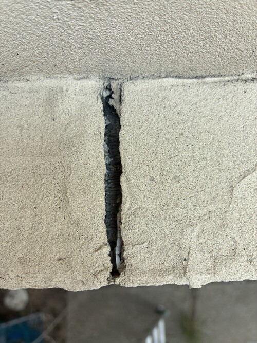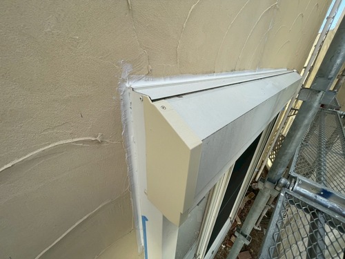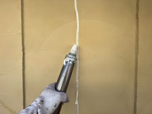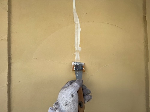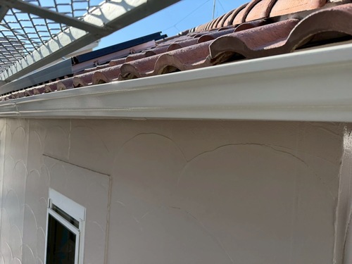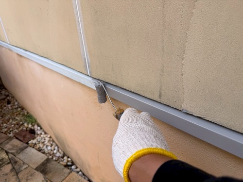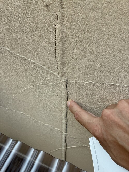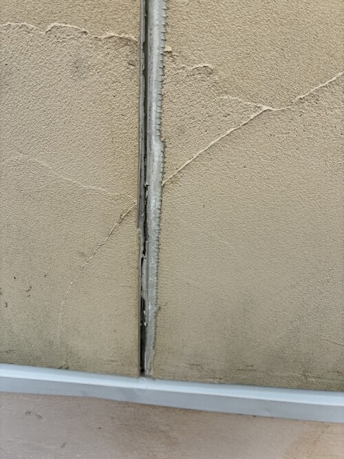 下地のサイディングのジョイント部が割れており、修繕をしながらの塗り替え工事を致しました