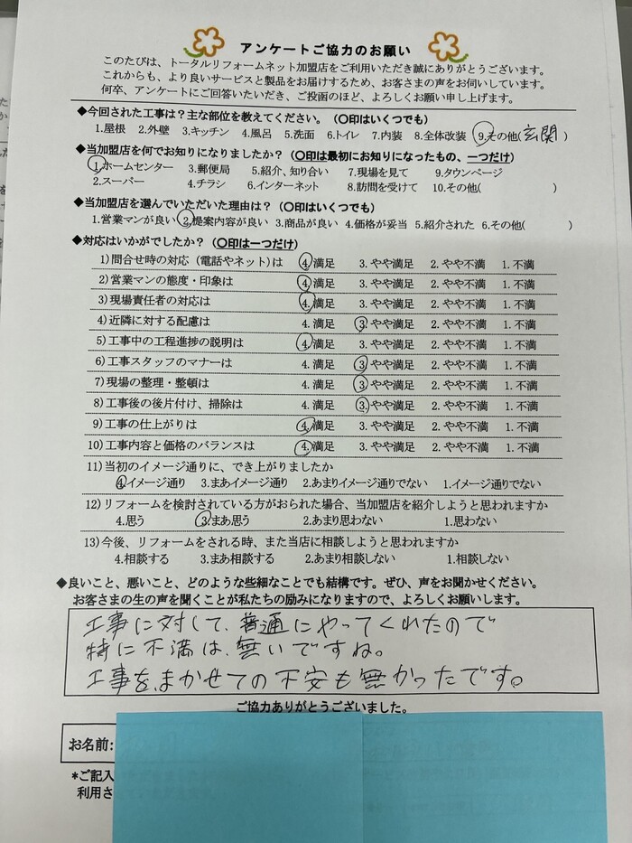 岸和田市 M様邸 玄関リフォーム工事 LIXILインプラス リシェント玄関引戸 S57型