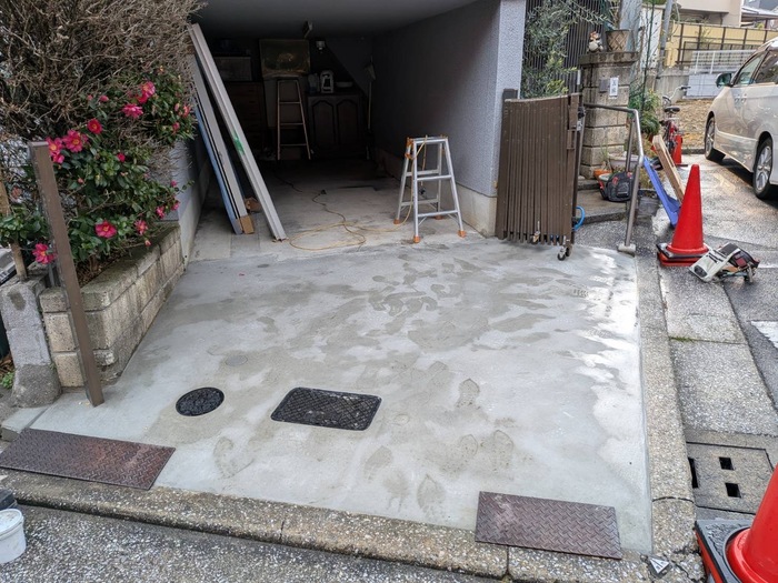 ガレージの土間のやり替え工事及び立水栓新設工事