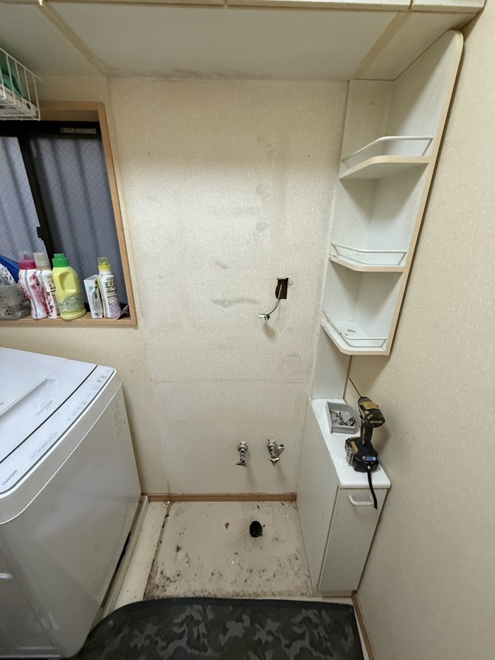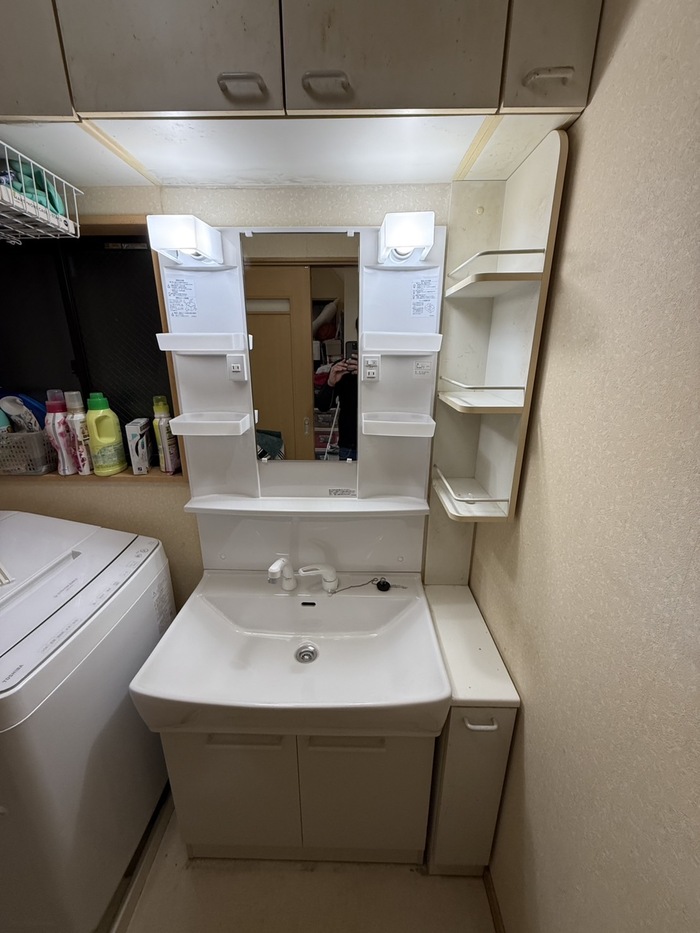上のキャビネットはそのままで、洗面化粧台の本体のみ交換させていただきました